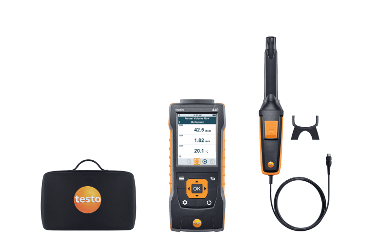 - testo 440 多参数,多元化配置, 多形态测量的仪器, 内置的标准测量程序可提供直观的测量操作,数据完整,适用于不同规格的通风空调系统检测及不同需求的室内空气质量,舒适度评估。