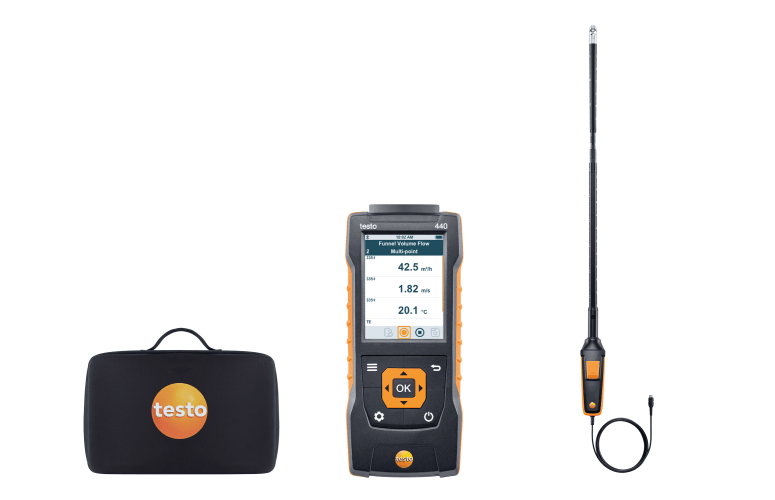 testo 440是一款多参数,多元化配置,多形态测量的仪器。内置的标准测量程序可提供直观的测量操作,数据完整,适用于不同规格的通风空调系统检测及不同需求的室内空气质量,舒适度评估。